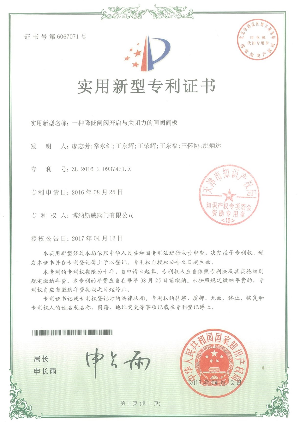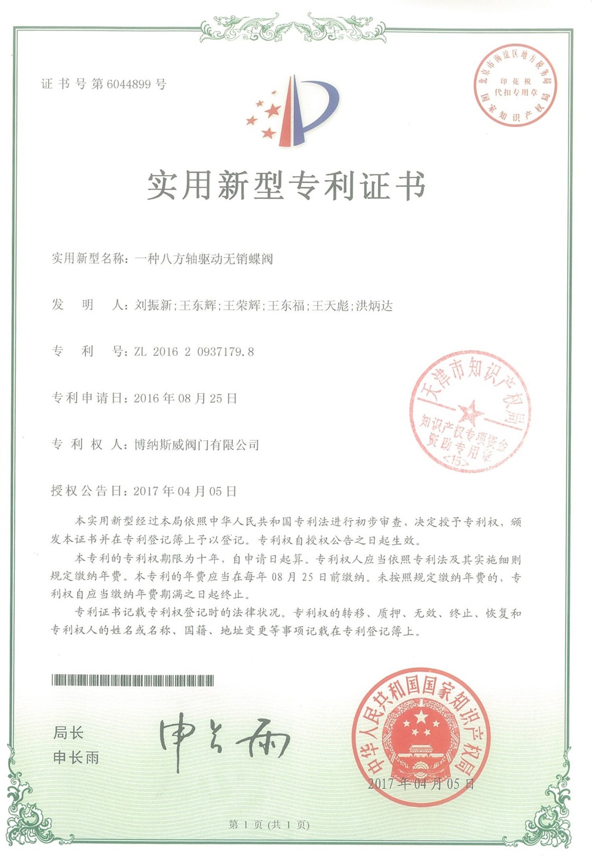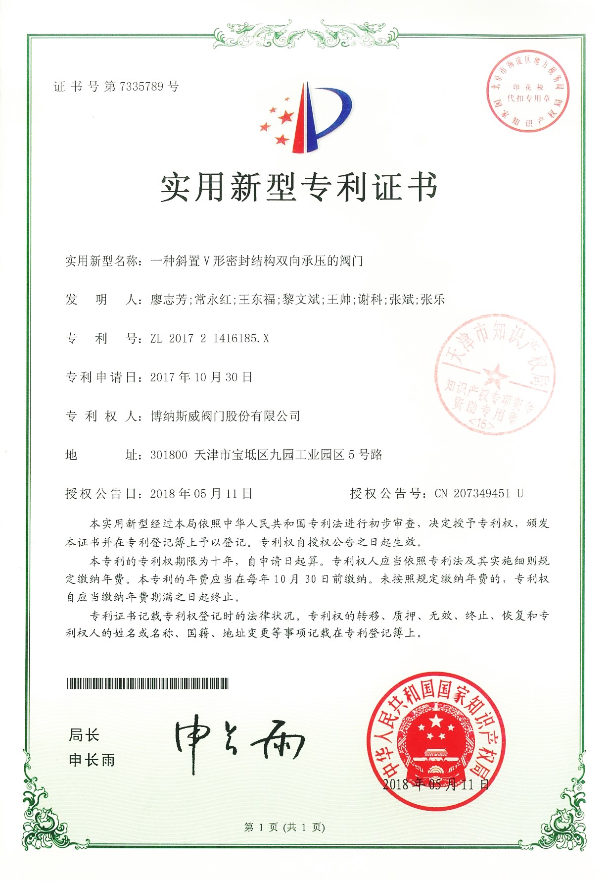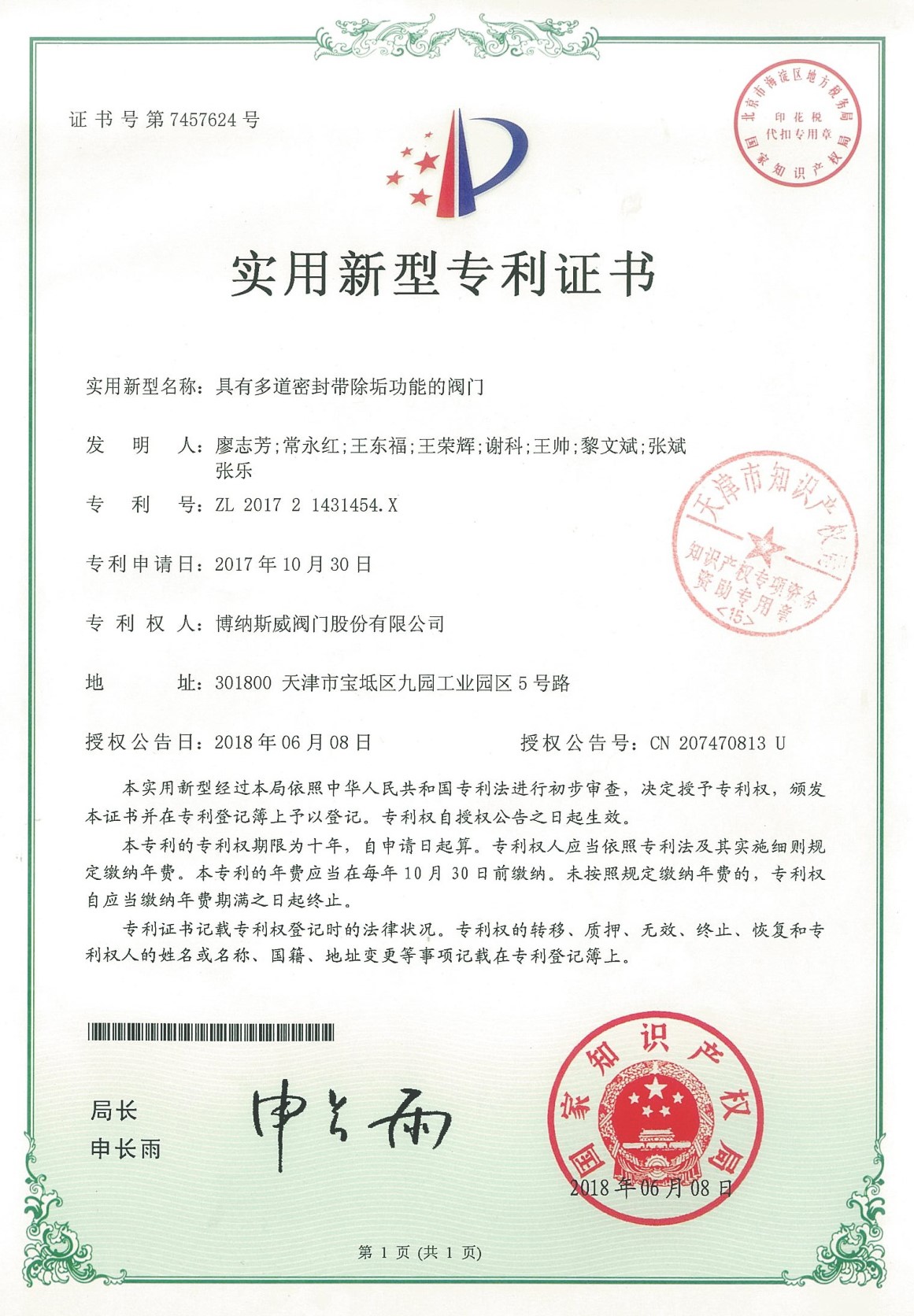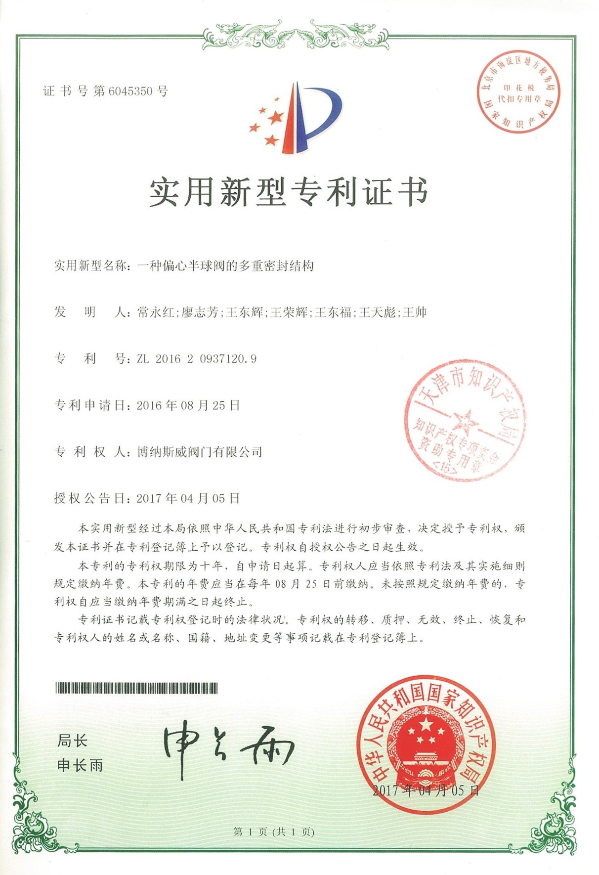 公司先后通過ISO9001質(zhì)量管理體系、ISO14001環(huán)境管理體系、GB/T45001職業(yè)健康安全管理體系、歐盟CE等認(rèn)證,榮獲“高新技術(shù)企業(yè)”、“國防特種閥門研發(fā)中心”、“天津市企業(yè)技術(shù)中心”等榮譽(yù)。公司與武漢大學(xué)、長沙理工大學(xué)、華北水利水電大學(xué)廣泛開展產(chǎn)學(xué)研合作。潛心投入也結(jié)出累累碩果:獲得200余項(xiàng)專利技術(shù),主編、參編國家和行業(yè)標(biāo)準(zhǔn)10多項(xiàng),在業(yè)內(nèi)重要期刊發(fā)表10余篇論文,榮獲中國機(jī)械工業(yè)科學(xué)技術(shù)獎(jiǎng)1項(xiàng)。