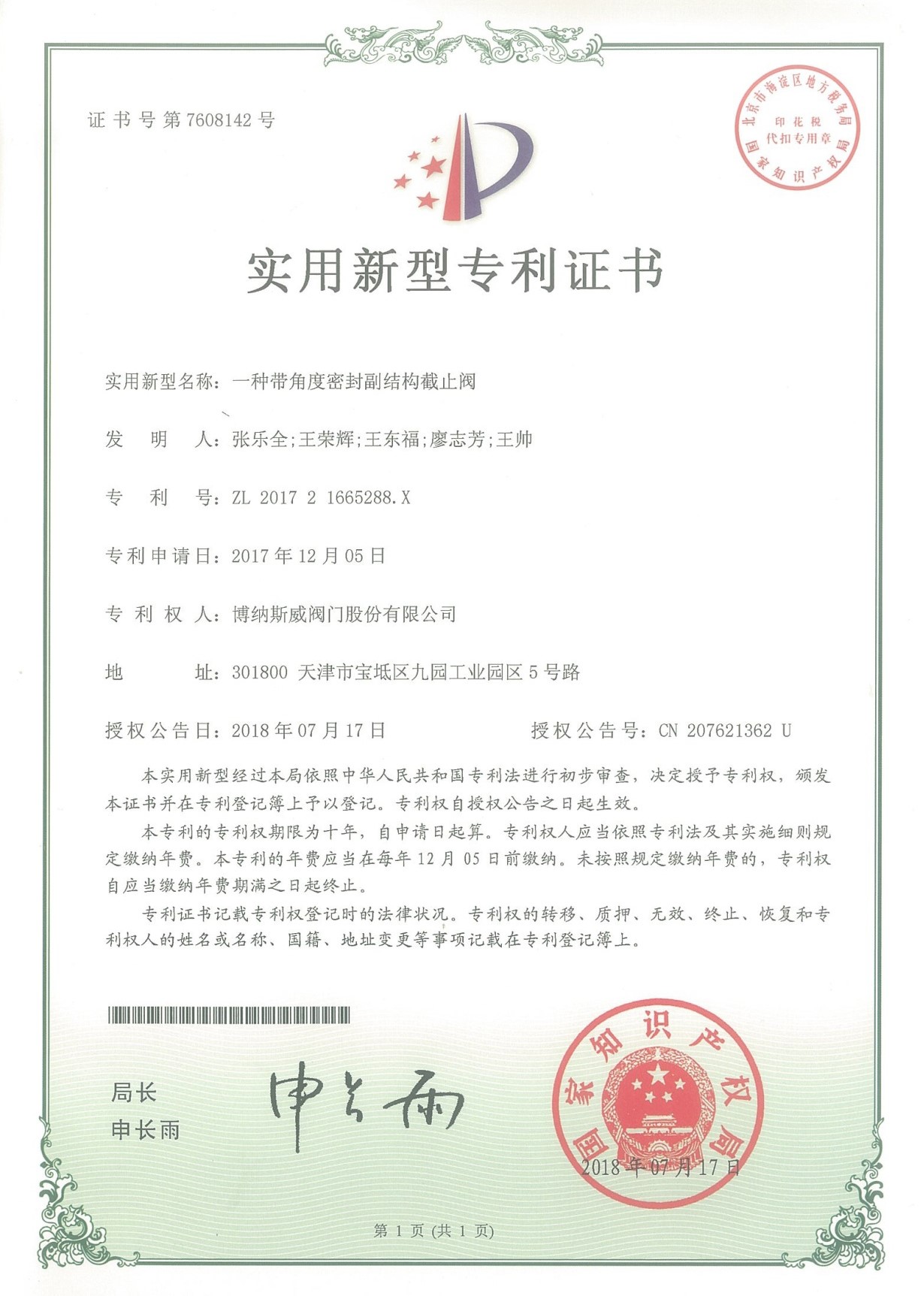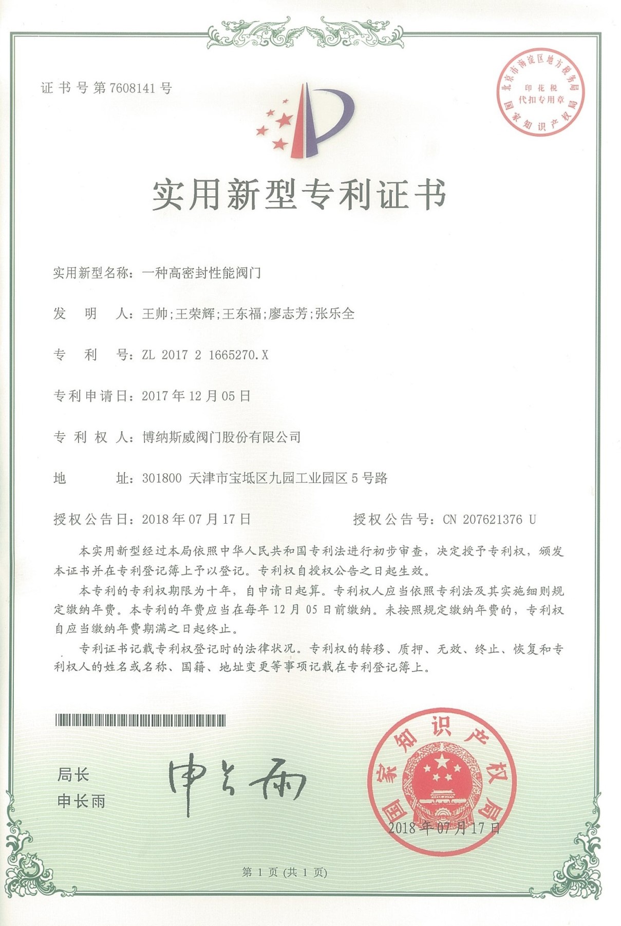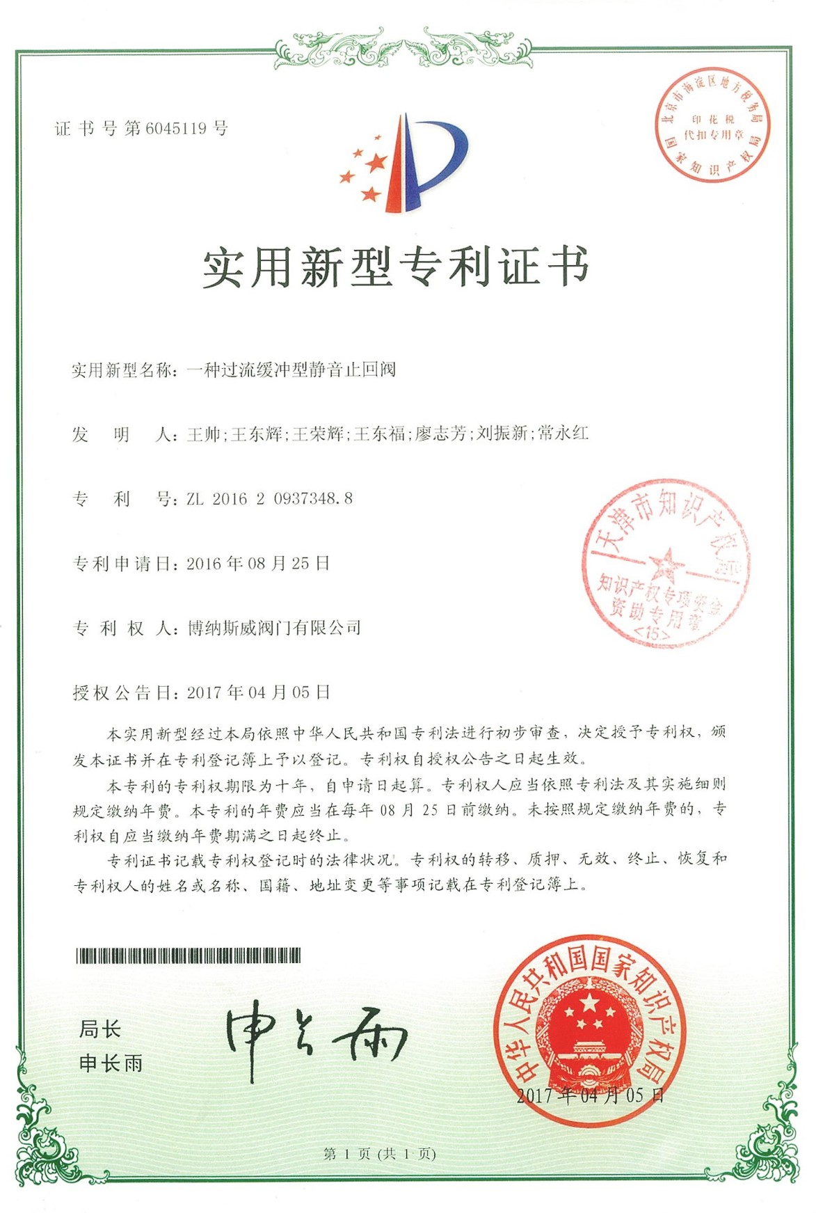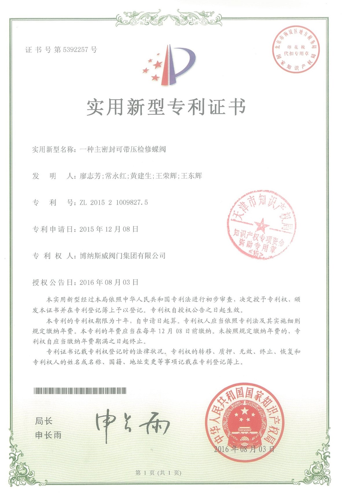 公司先后通過ISO9001質(zhì)量管理體系、ISO14001環(huán)境管理體系、GB/T45001職業(yè)健康安全管理體系、歐盟CE等認(rèn)證,榮獲“高新技術(shù)企業(yè)”、“國防特種閥門研發(fā)中心”、“天津市企業(yè)技術(shù)中心”等榮譽(yù)。公司與武漢大學(xué)、長沙理工大學(xué)、華北水利水電大學(xué)廣泛開展產(chǎn)學(xué)研合作。潛心投入也結(jié)出累累碩果:獲得200余項(xiàng)專利技術(shù),主編、參編國家和行業(yè)標(biāo)準(zhǔn)10多項(xiàng),在業(yè)內(nèi)重要期刊發(fā)表10余篇論文,榮獲中國機(jī)械工業(yè)科學(xué)技術(shù)獎(jiǎng)1項(xiàng)。
