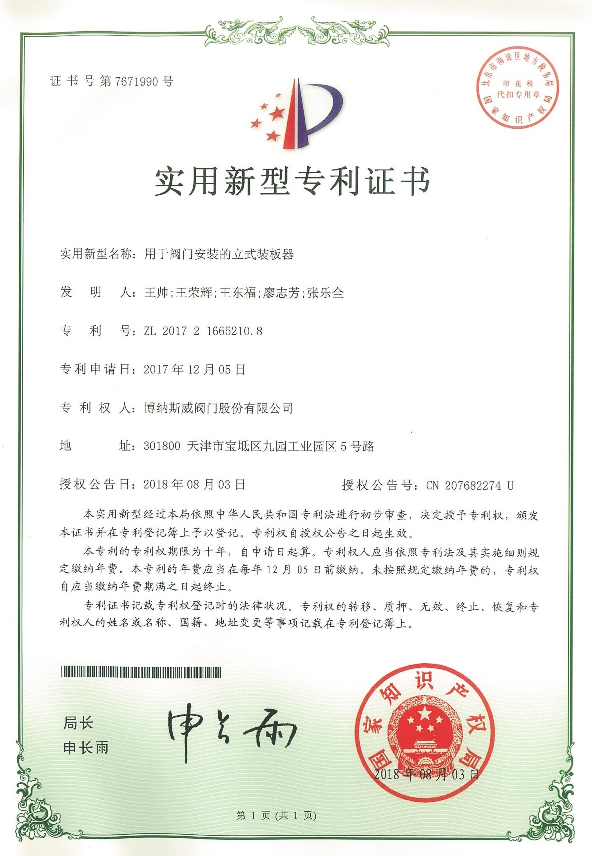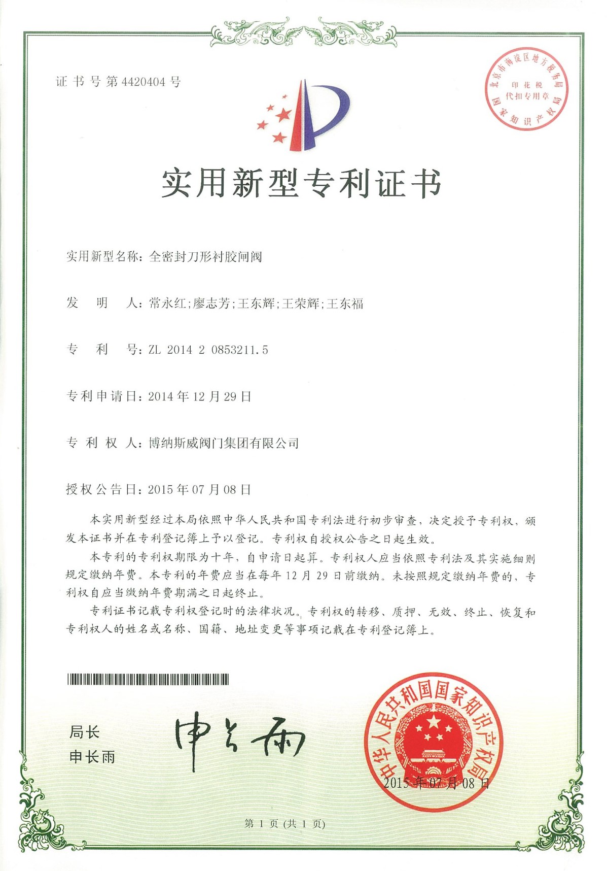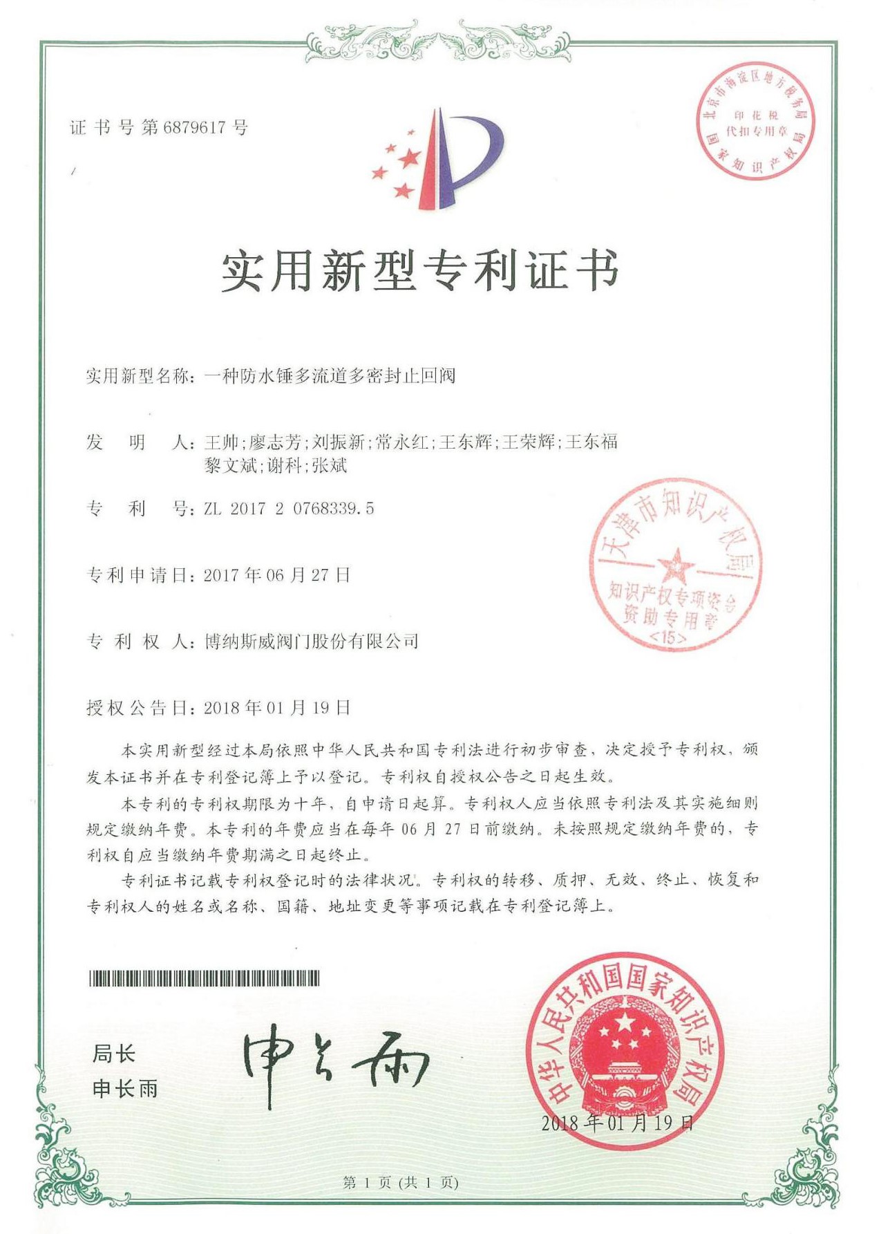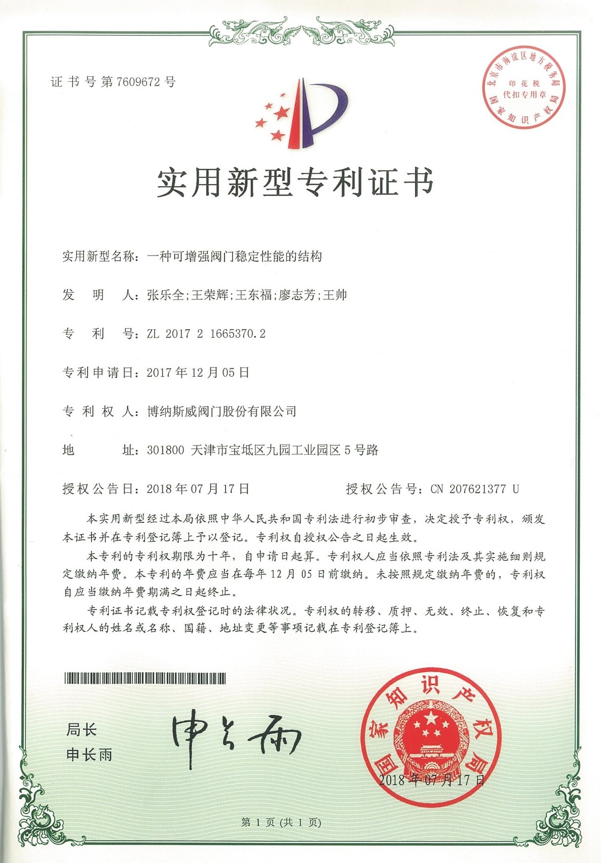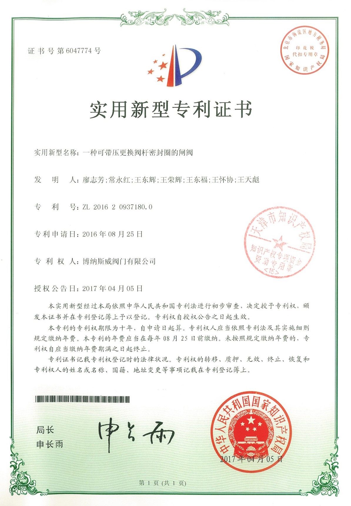 公司先后通過ISO9001質(zhì)量管理體系、ISO14001環(huán)境管理體系、GB/T45001職業(yè)健康安全管理體系、歐盟CE等認(rèn)證,榮獲“高新技術(shù)企業(yè)”、“國防特種閥門研發(fā)中心”、“天津市企業(yè)技術(shù)中心”等榮譽(yù)。公司與武漢大學(xué)、長沙理工大學(xué)、華北水利水電大學(xué)廣泛開展產(chǎn)學(xué)研合作。潛心投入也結(jié)出累累碩果:獲得200余項(xiàng)專利技術(shù),主編、參編國家和行業(yè)標(biāo)準(zhǔn)10多項(xiàng),在業(yè)內(nèi)重要期刊發(fā)表10余篇論文,榮獲中國機(jī)械工業(yè)科學(xué)技術(shù)獎(jiǎng)1項(xiàng)。