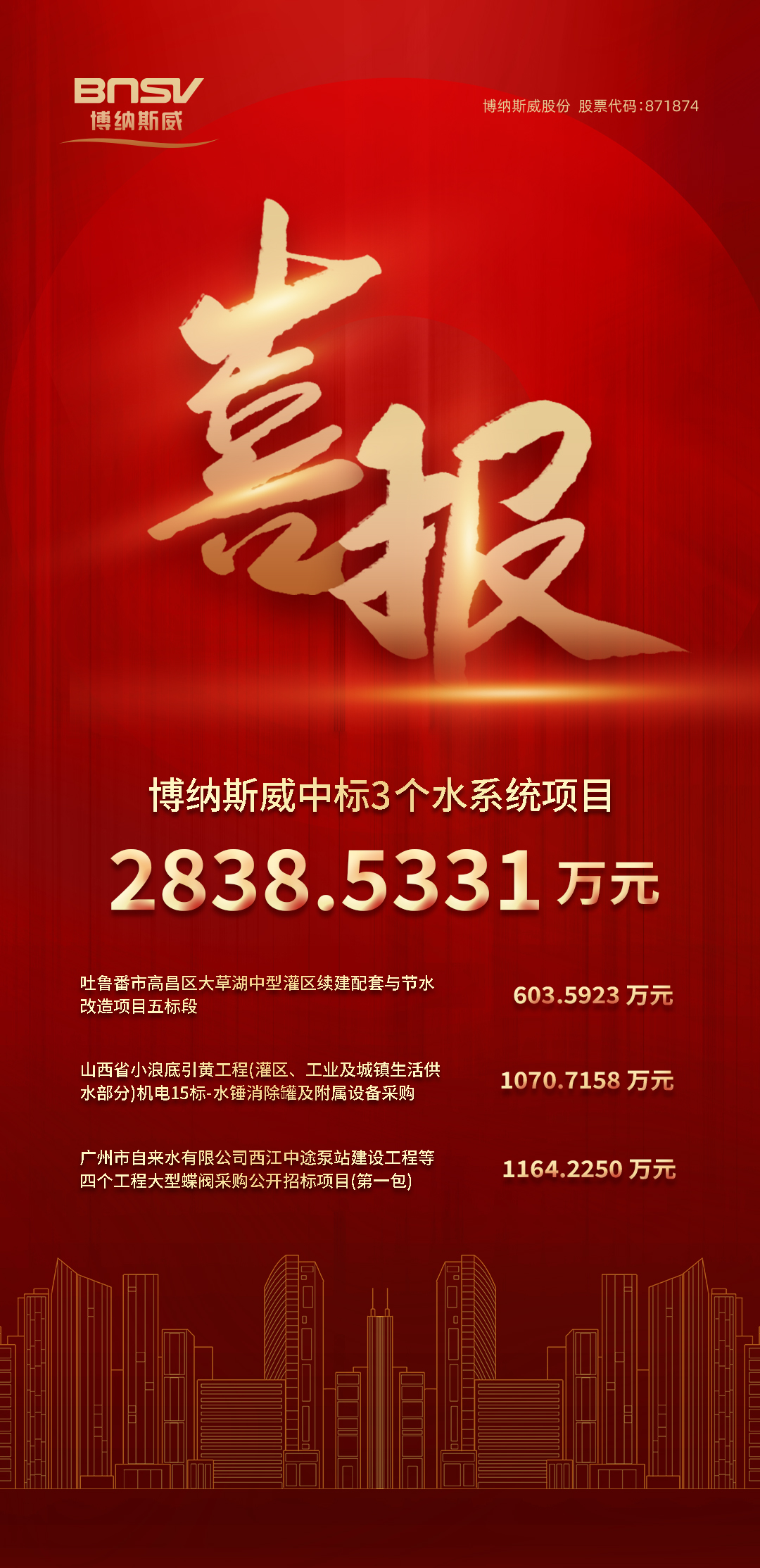 喜報!博納斯威中標3個水系統(tǒng)項目2838.5331萬元