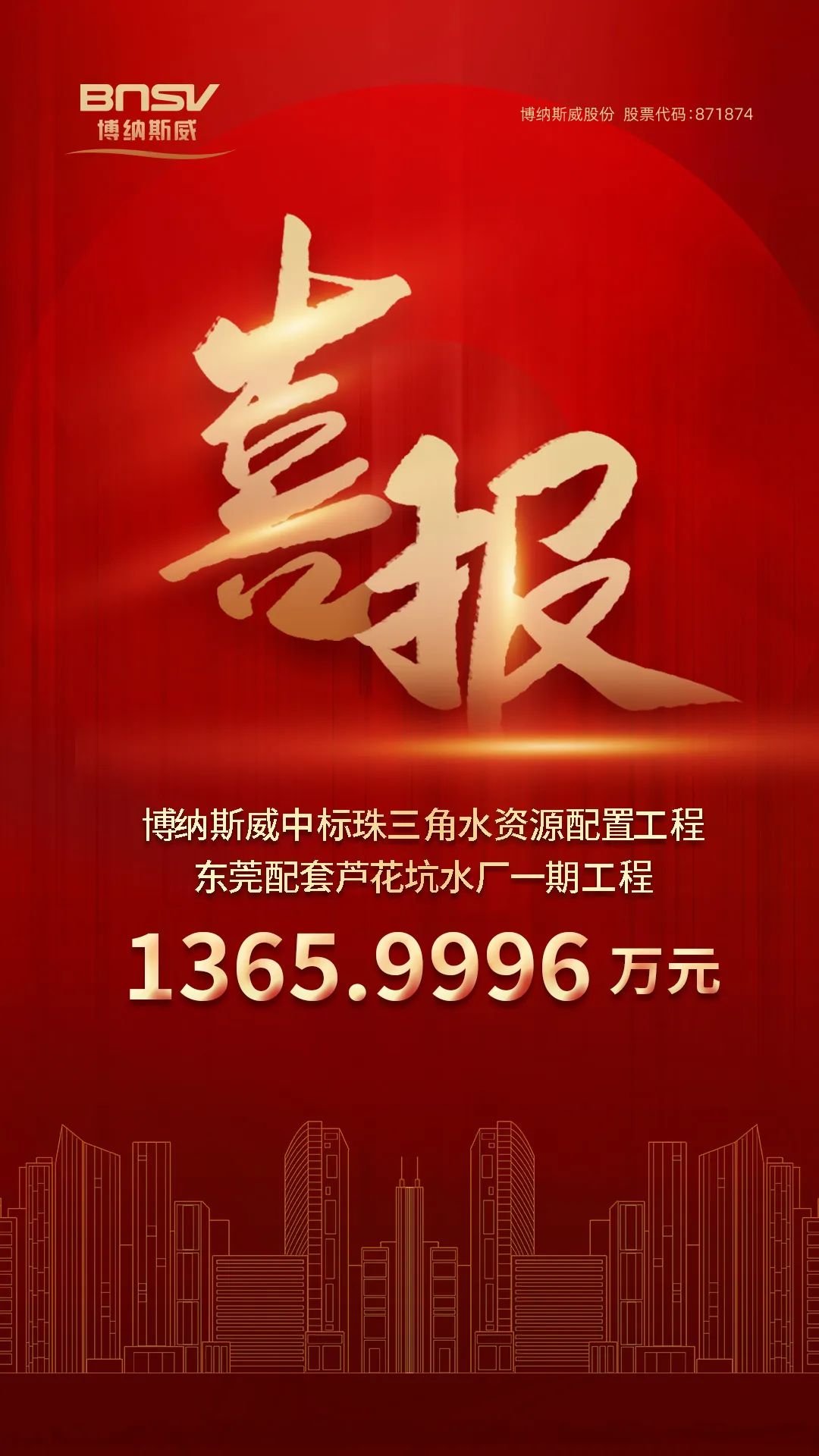 喜報!博納斯威中標(biāo)珠三角水資源配置工程東莞配套蘆花坑水廠一期工程1365.9996萬元