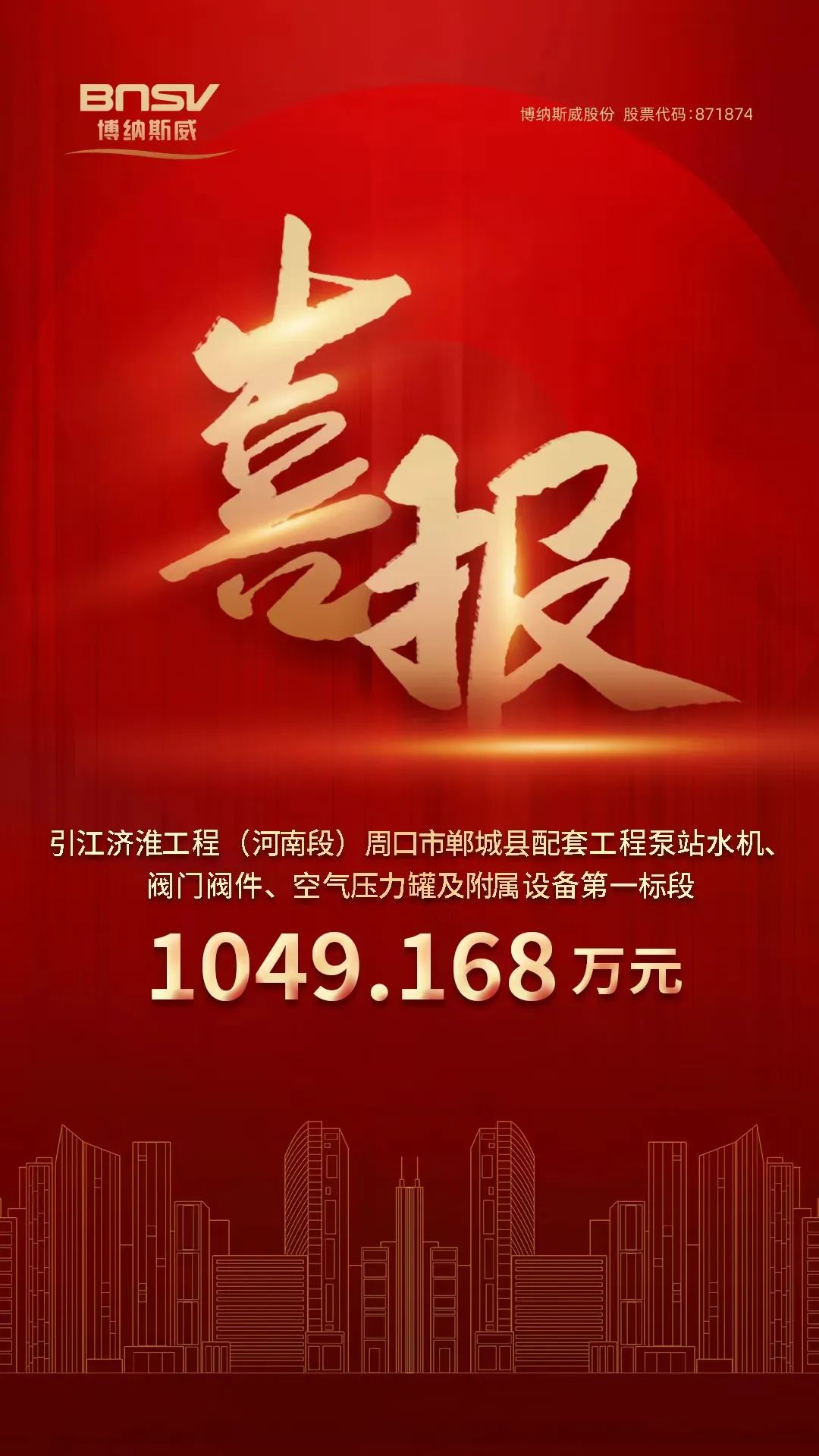 喜報(bào)!博納斯威中標(biāo)引江濟(jì)淮工程(河南段)周口市鄲城縣配套工程泵站水機(jī)、閥門閥件、空氣壓力罐及附屬設(shè)備第一標(biāo)段1049.168萬(wàn)元