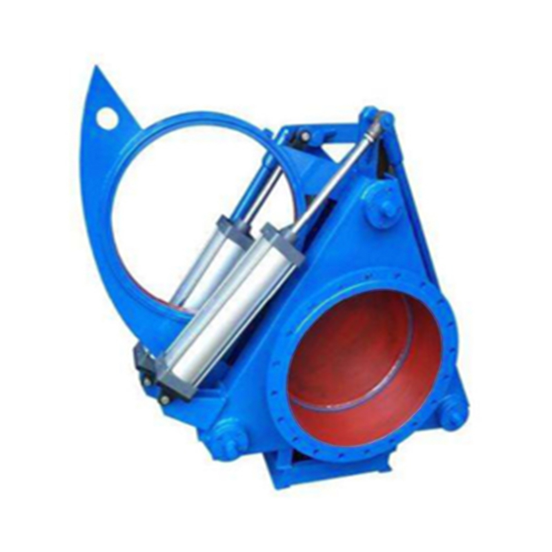 氣動(dòng)盲板閥主要由左閥體、右閥體、絲杠副、閥板、密封圈、杠桿、氣缸等零件組成,并由底座、支撐柱構(gòu)成一個(gè)剛性結(jié)構(gòu)體。閥門(mén)中設(shè)有夾緊、松開(kāi)氣缸和翻板氣缸,夾緊、松開(kāi)氣缸通過(guò)杠桿副和絲桿螺旋副驅(qū)動(dòng)左、右閥體完成松開(kāi)、夾緊動(dòng)作,翻板氣缸驅(qū)動(dòng)閥板完成開(kāi)關(guān)動(dòng)作。橡膠密封圈鑲嵌在閥板上,具有耐溫高、密封性能好、更換方便、使用壽命長(zhǎng)等特點(diǎn)。 本閥可以單臺(tái)遠(yuǎn)距離控制,亦可多臺(tái)聯(lián)網(wǎng)遠(yuǎn)距離控制,非正常情況下還可以利用閥門(mén)本身裝置手動(dòng)操作。